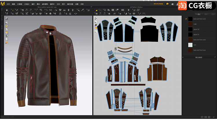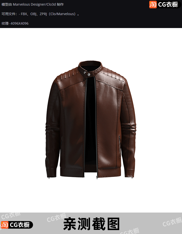 CLO3D服装素材MD男士皮夹克外套3D衣服建模打版纸样ZPRJ工程模型