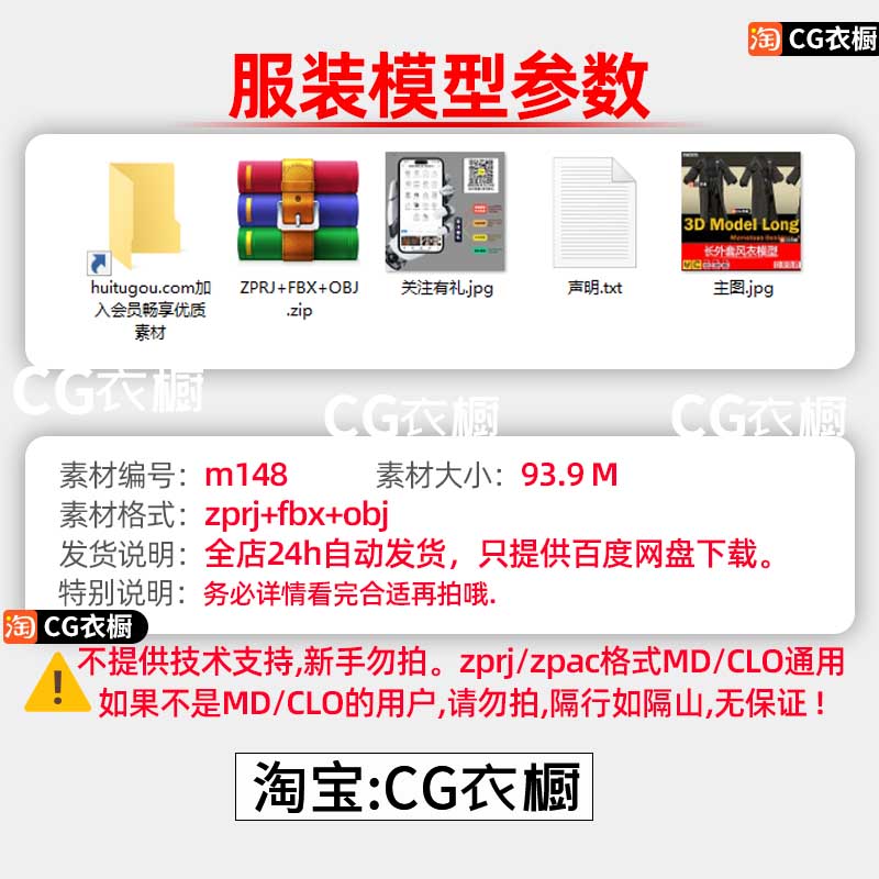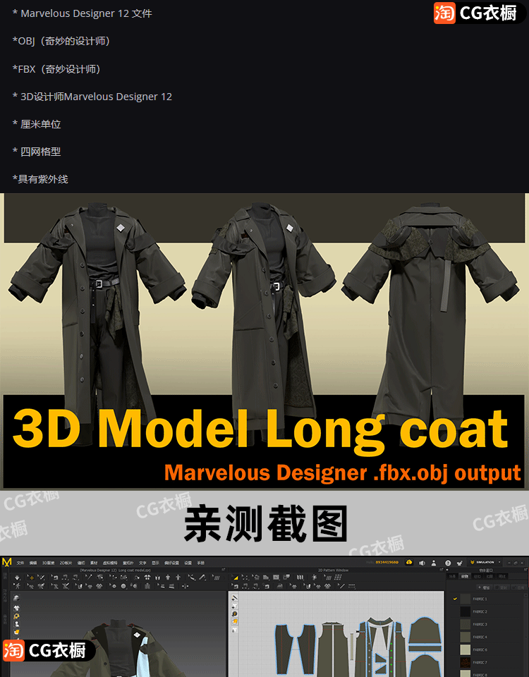 CLO3D/MD衣服素材ZPRJ长外套风衣模型3D服装设计打版建模工程文件