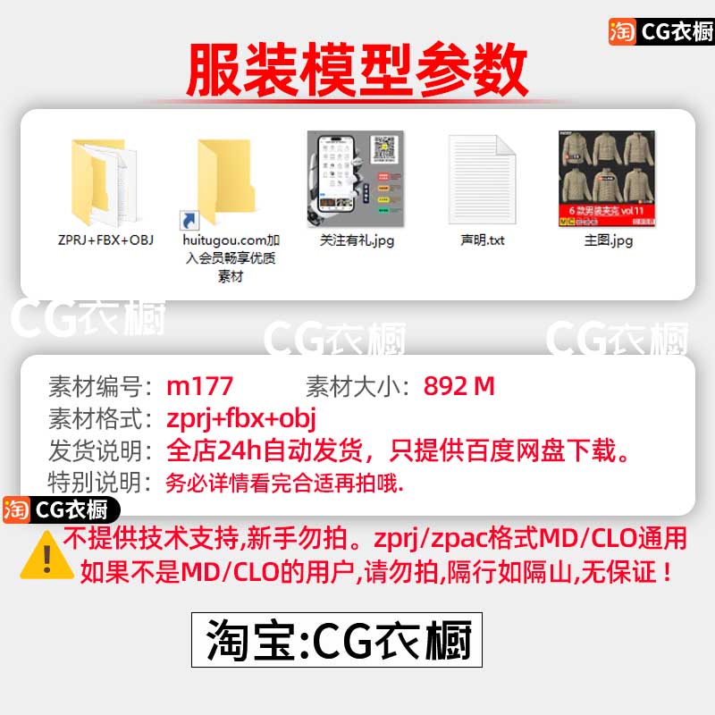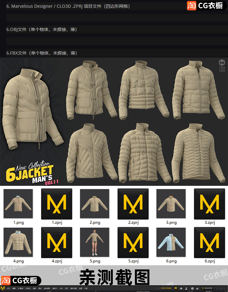MD衣服模型6款男装冬装羽绒服夹克外套CLO3D服装素材ZPRJ纸样工程