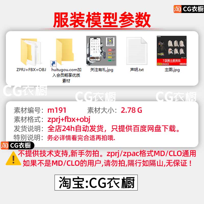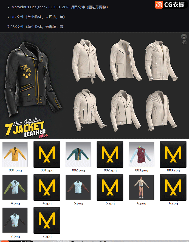 MD服装模板CLO3D素材7款男士皮夹克皮衣外套衣服3D模型ZPRJ工程