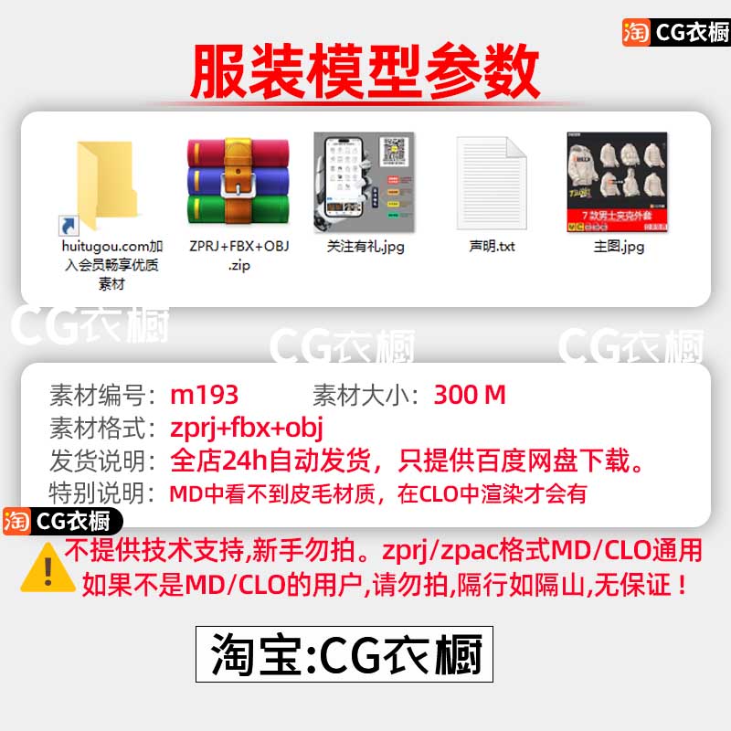 CLO3D服装模板MD衣服模型7款男装战术夹克外套衣服3D素材ZPRJ工程