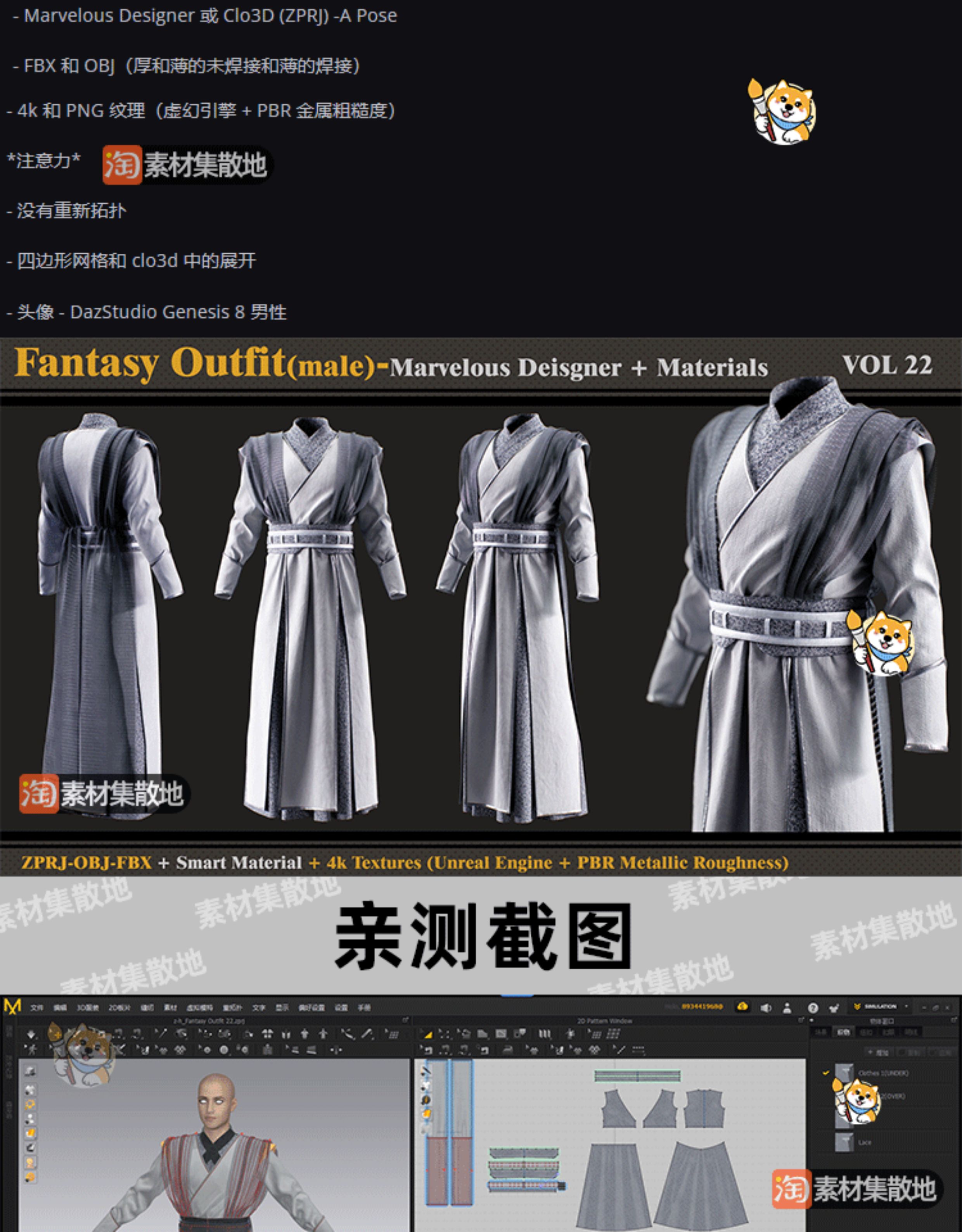 MD古代幻想男性服装CLO汉服青袍外套古装服饰ZPRJ模型打版源文件