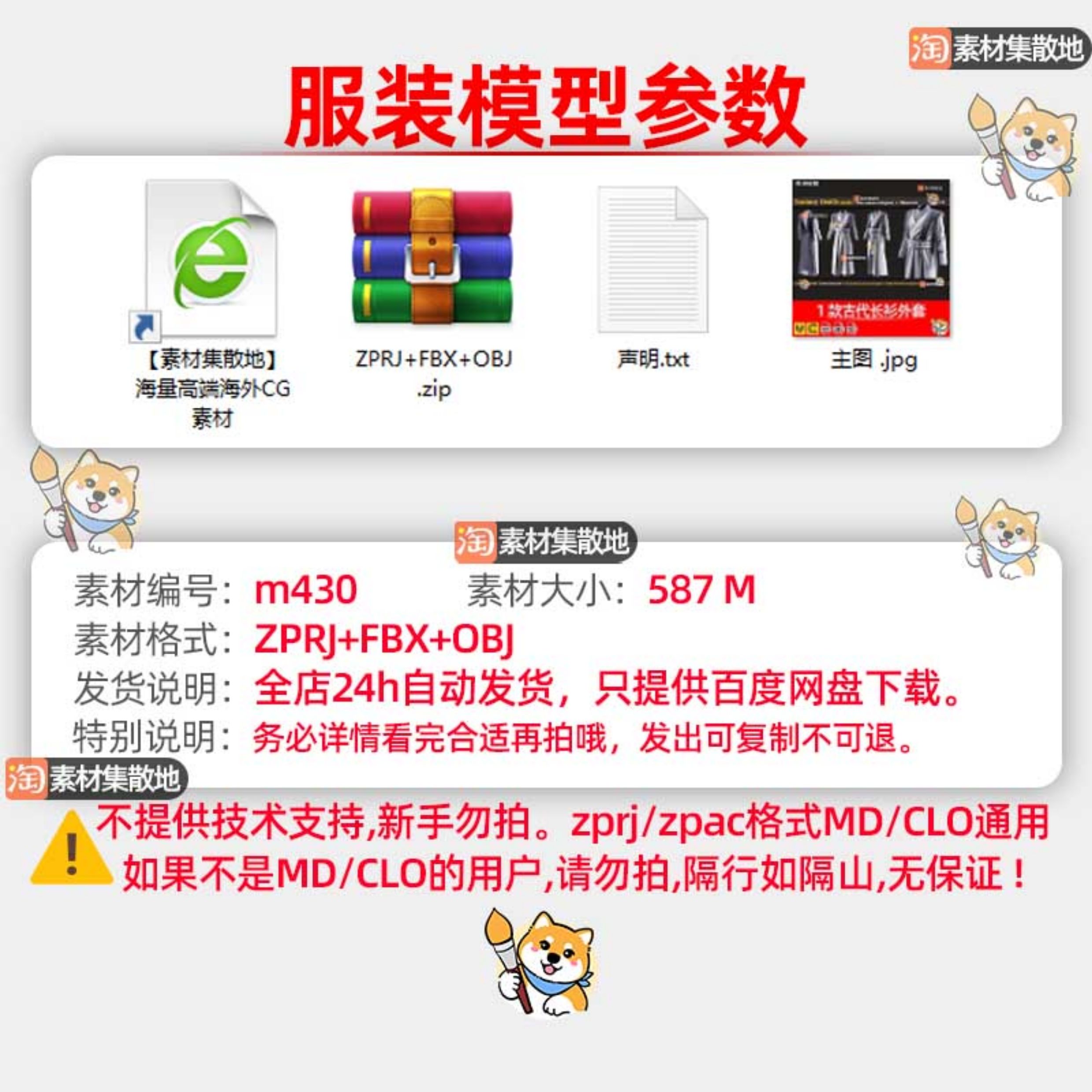 MD古代长衫外套服装CLO男性长袖上衣服饰ZPRJ模型打版工程源文件
