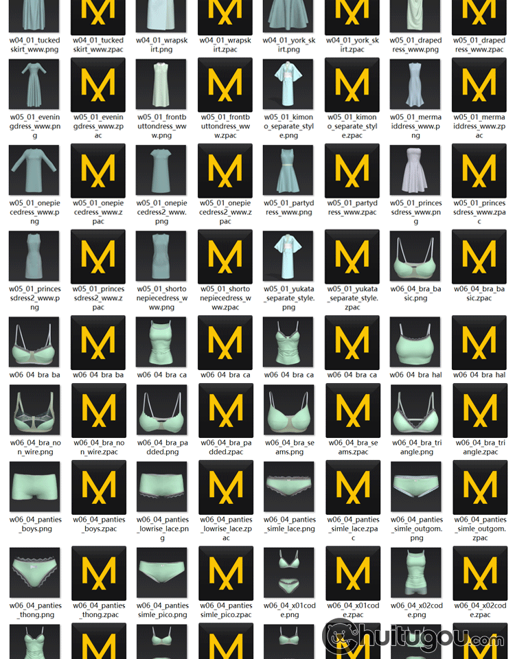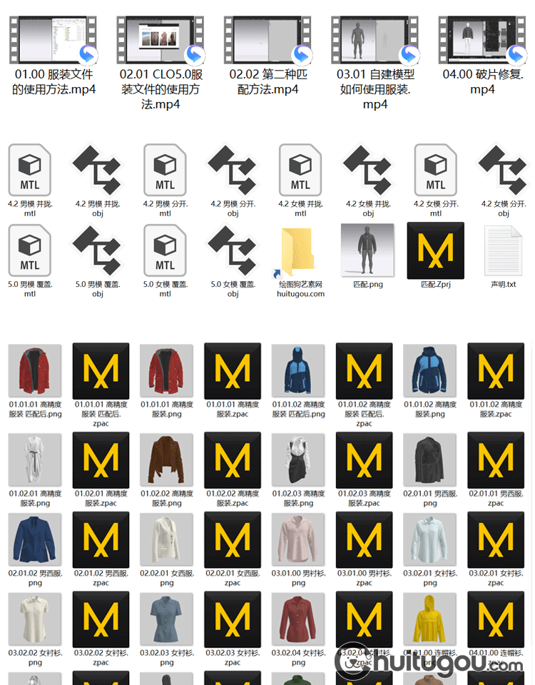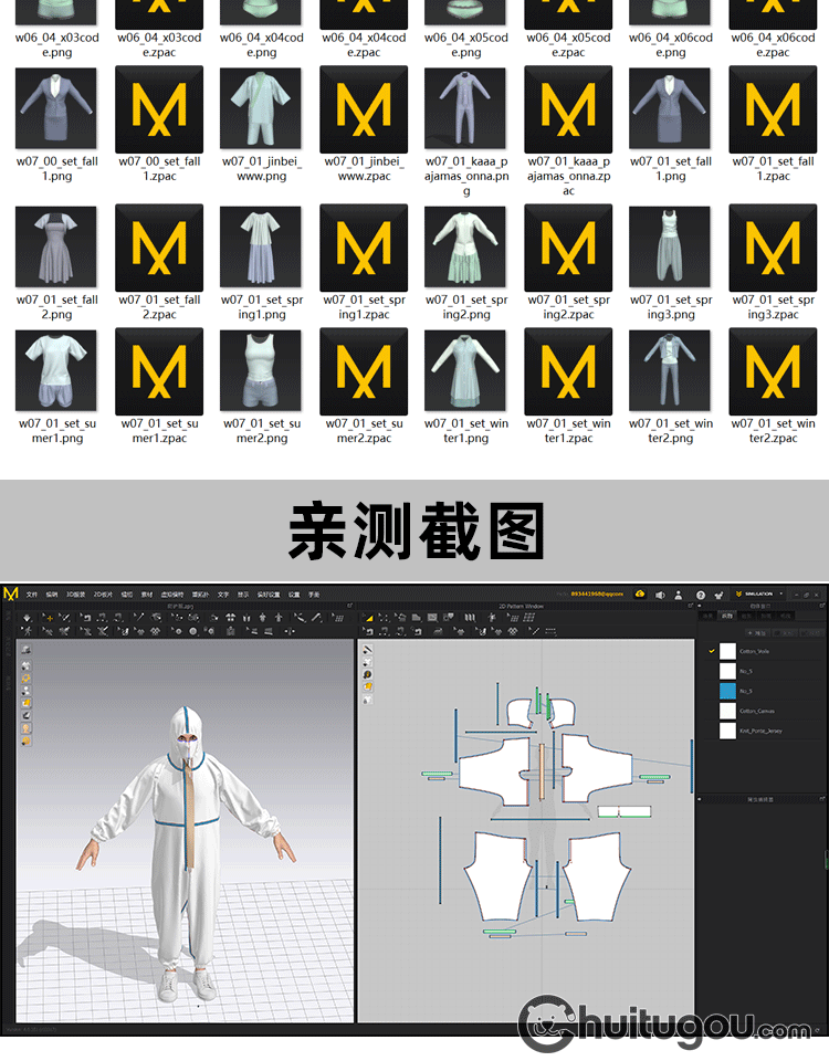 MD衣服素材CLO3D女装运动基础版型5款服装打版工程源文件zprj模型
