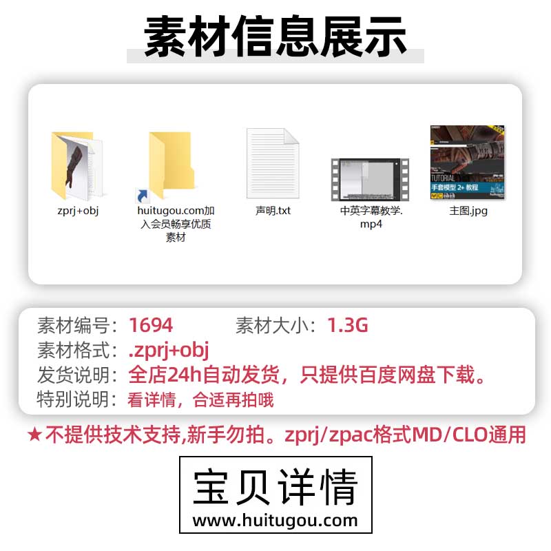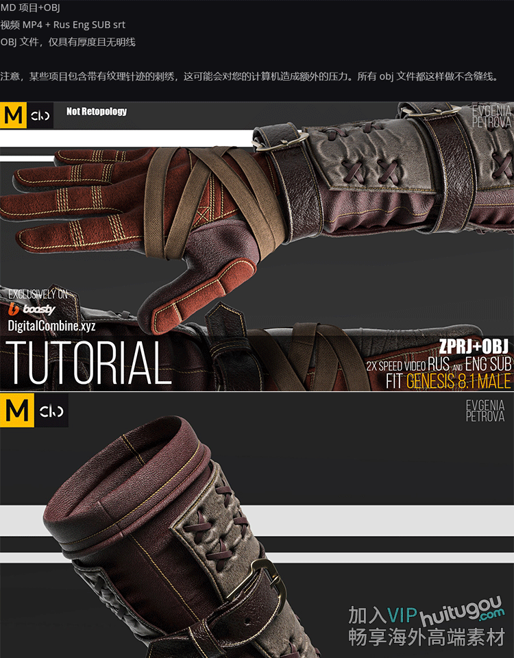 MD服装配饰Clo3D皮手套纸样工程文件OBJ模型附送打版建模视频教程