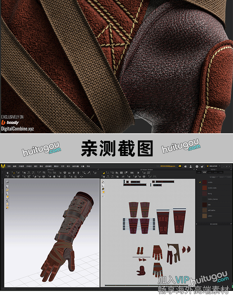 Clo3D服装配饰皮手套纸样工程文件OBJ素材 送打版3D建模视频教程