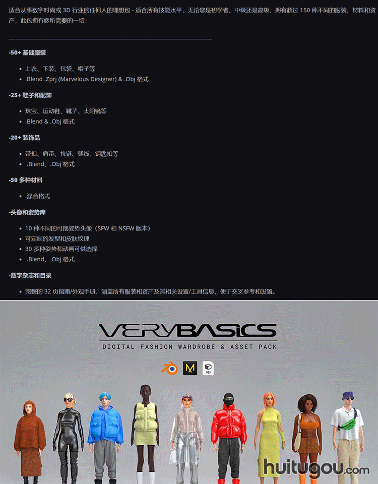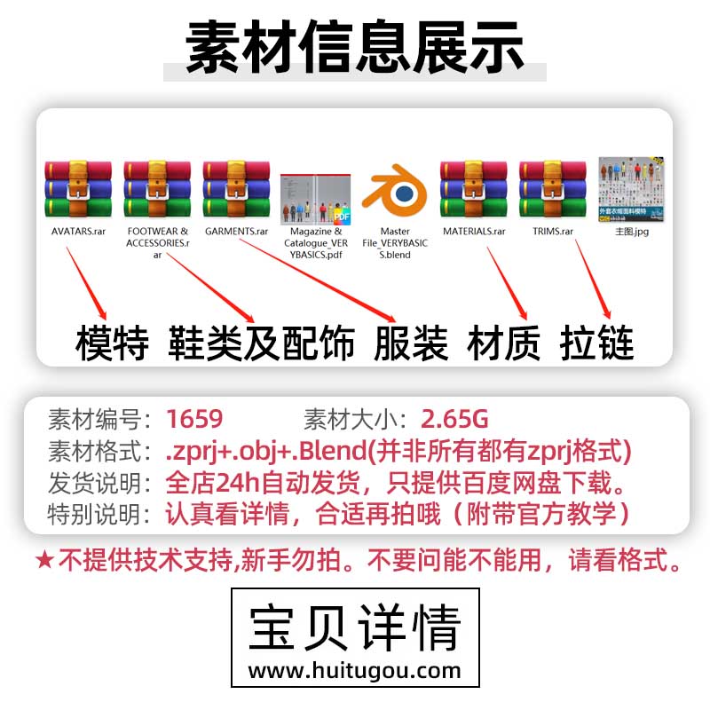 数字人物虚拟人物OBJ模特Blend鞋子zprj配饰MD衣服材质面料素材