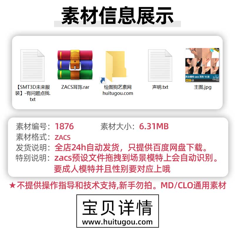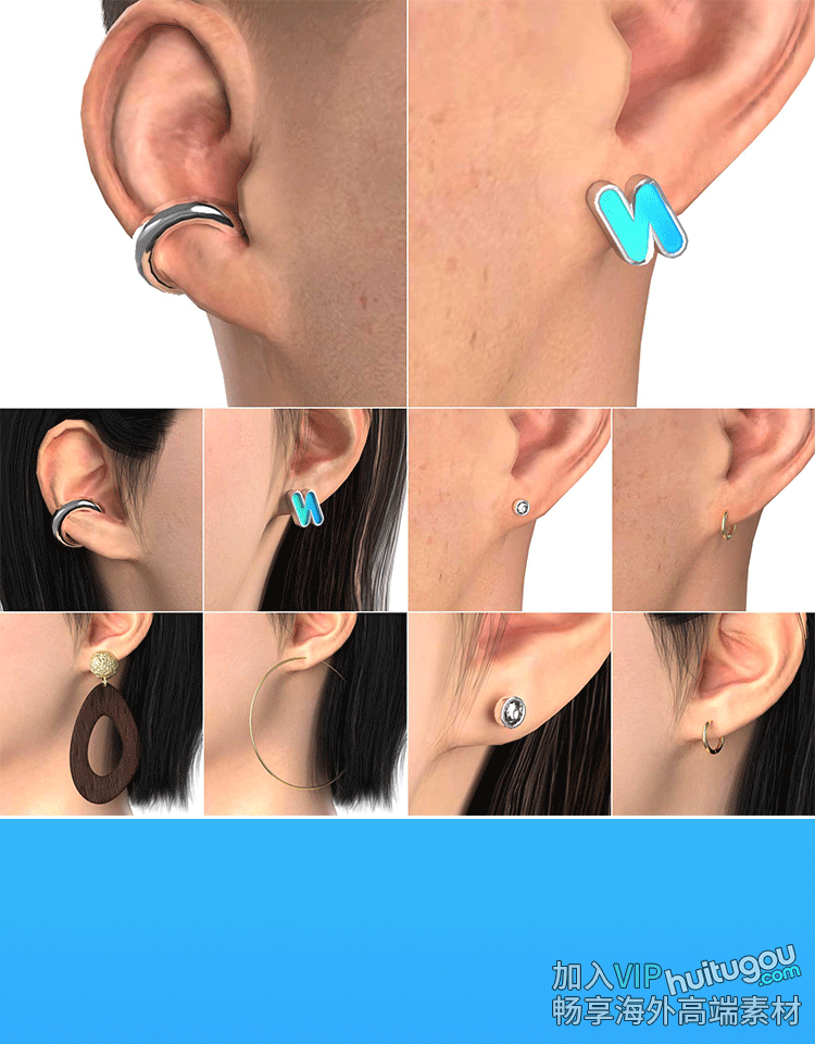 MD耳饰耳钉耳圈CLO3D服装走秀模特配饰男女模特装饰zacs格式素材