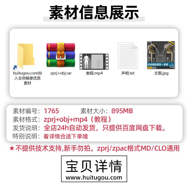 MD束带捆绑衣服案例教程CLO3D服装打版zprj纸样工程源文件obj素材
