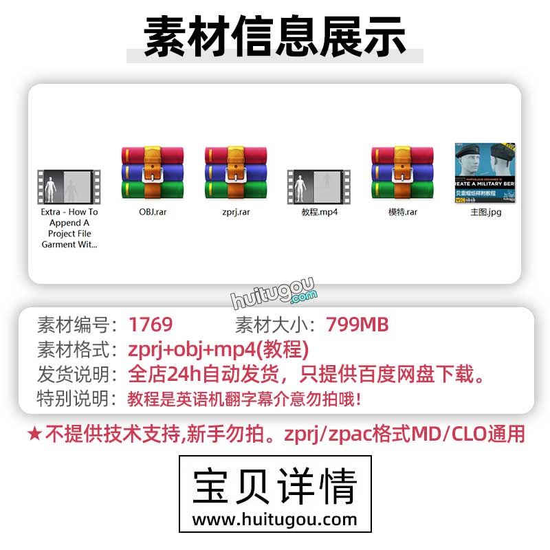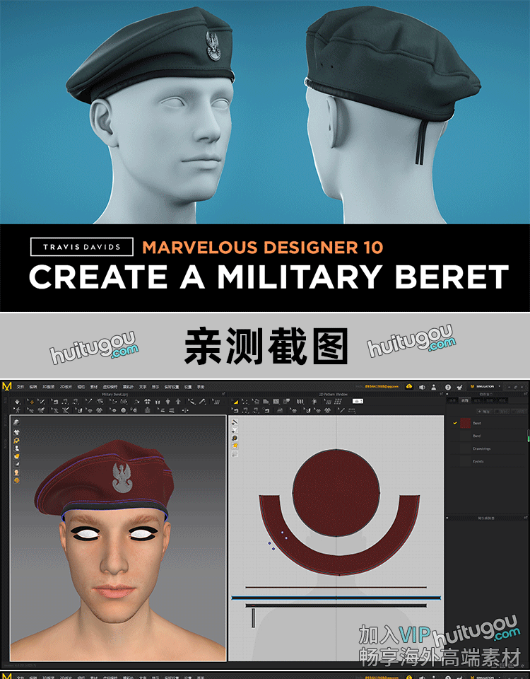 MD服装配饰CLO3D贝雷帽子zprj格式打版纸样文件带教程3D模型素材
