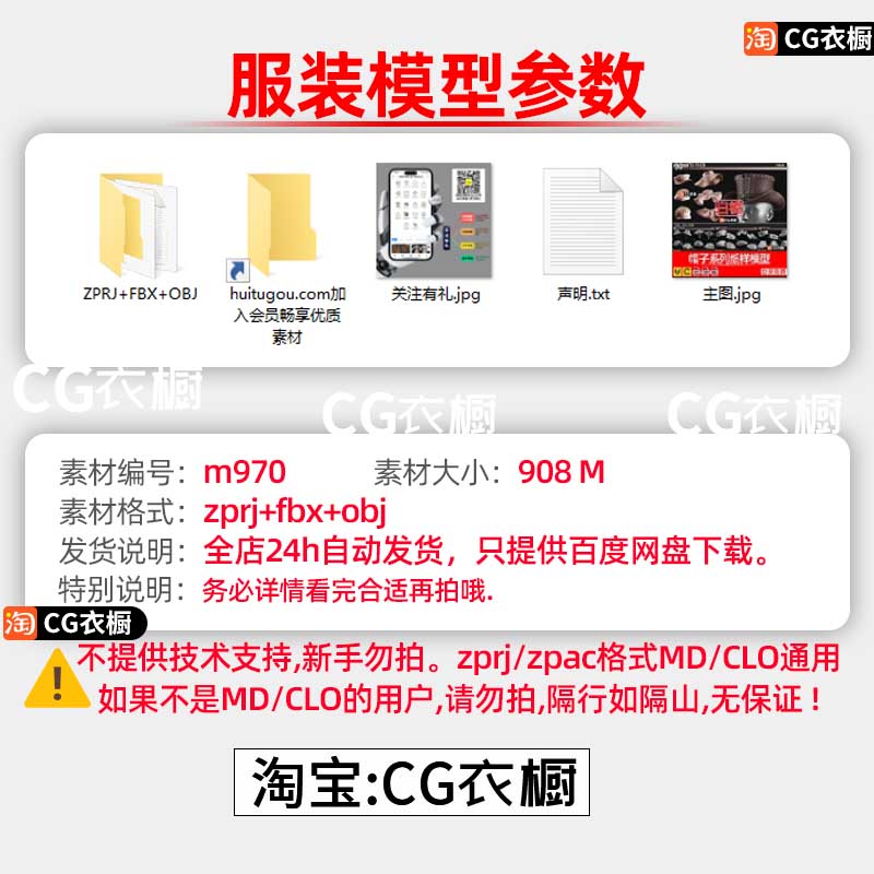MD素材文件CLO3D男女服装模型6款ZPRJ服装打版纸样工程源文件OBJ