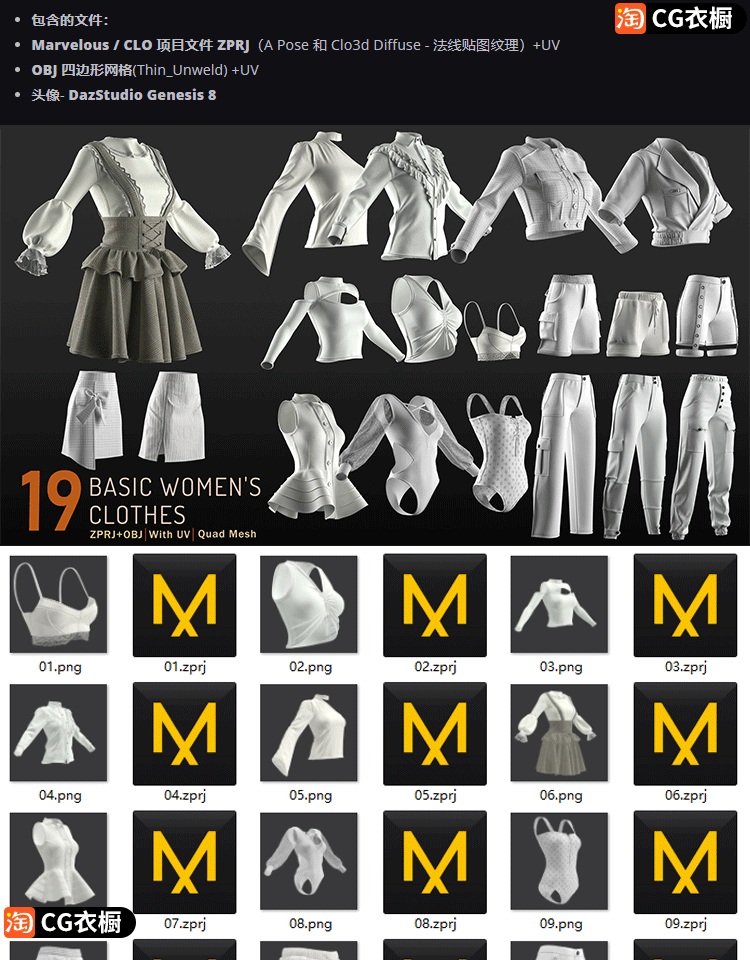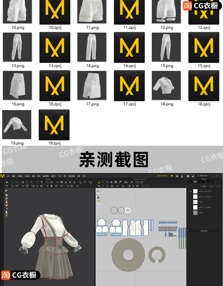 MD衣服模型CLO3D素材19款女士服装上衣裤子3D纸样模型ZPRJ工程OBJ