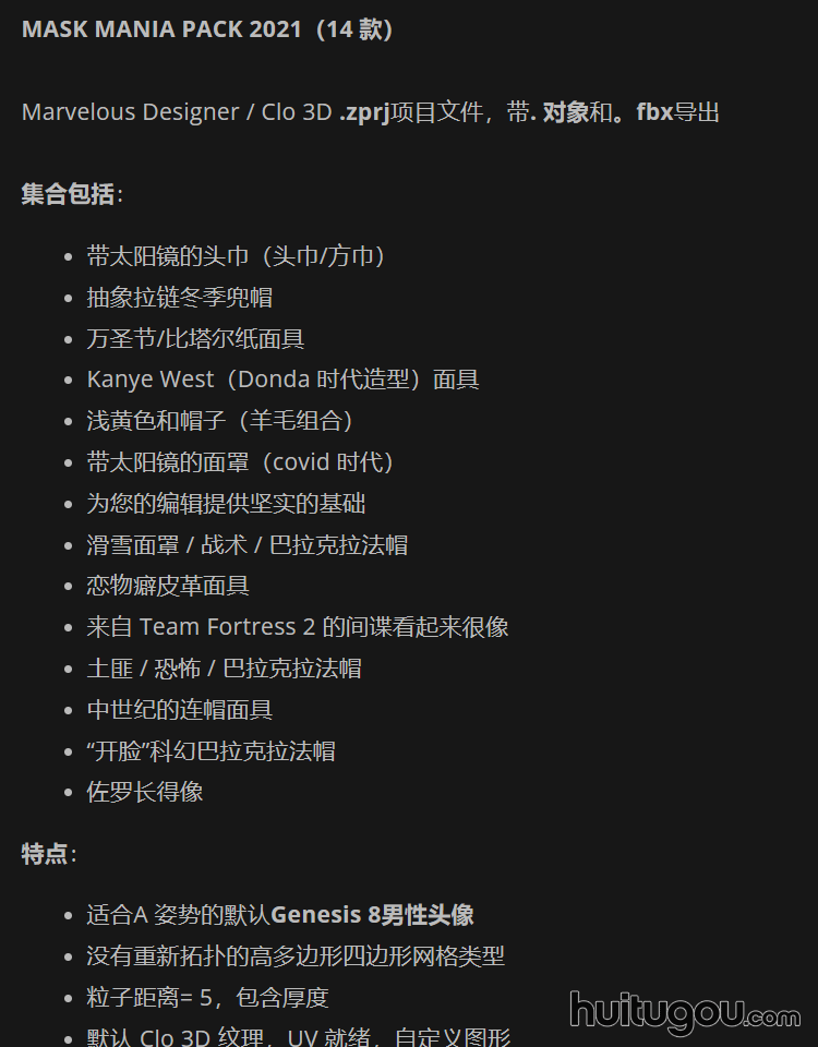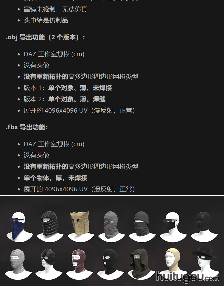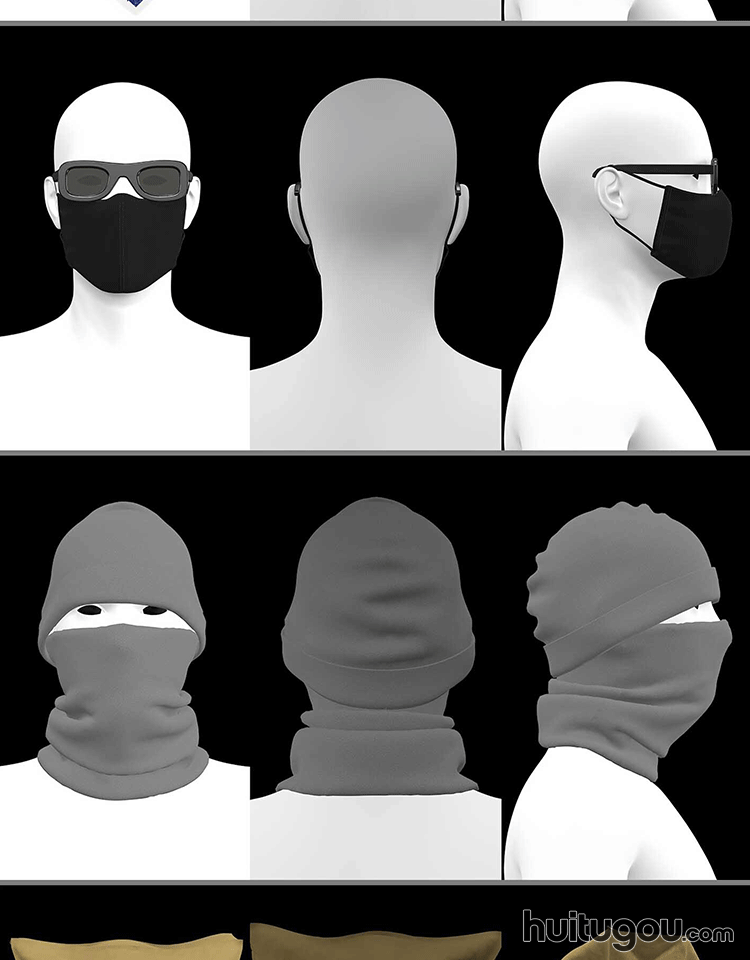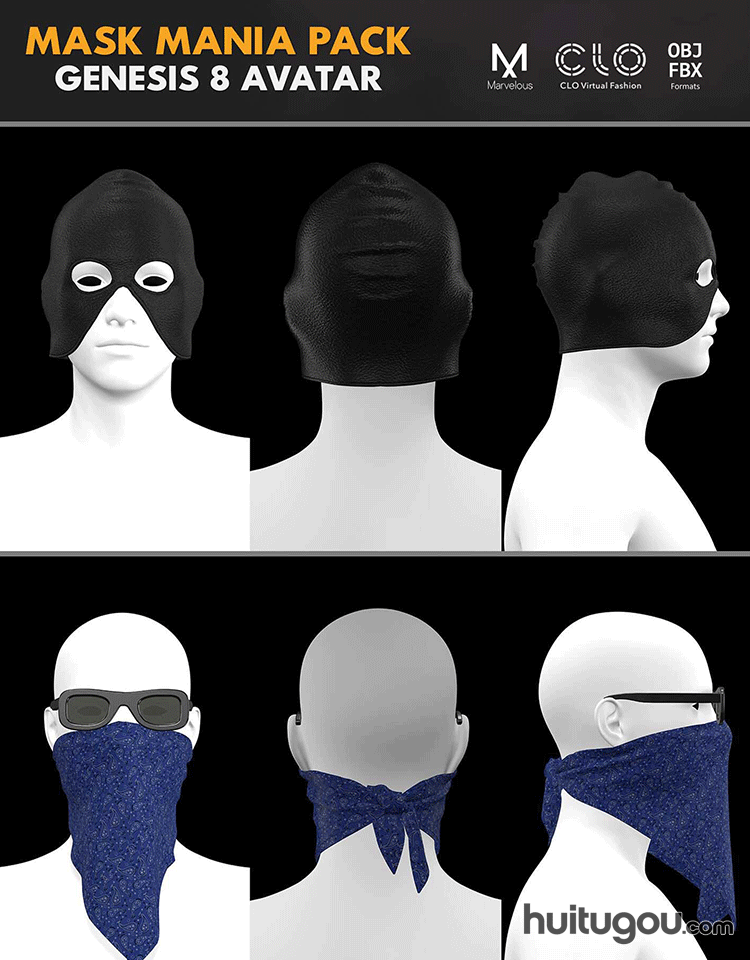 MD CLO3D面具头套墨镜头巾蒙面罩帽子fbx模型obj服饰打版设计素材