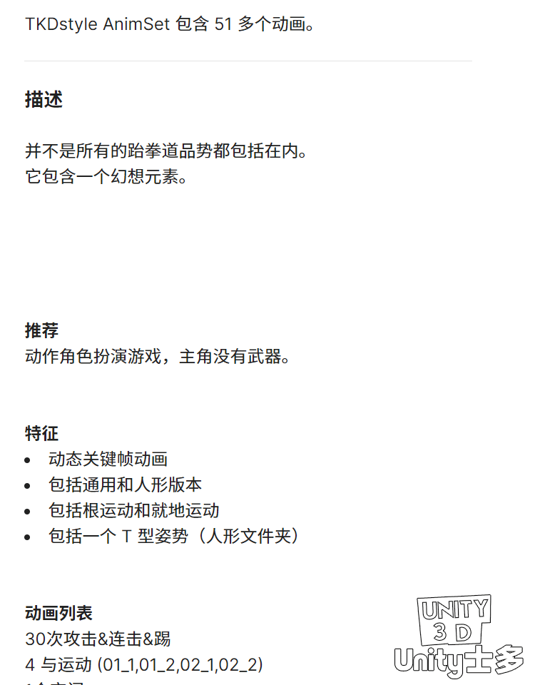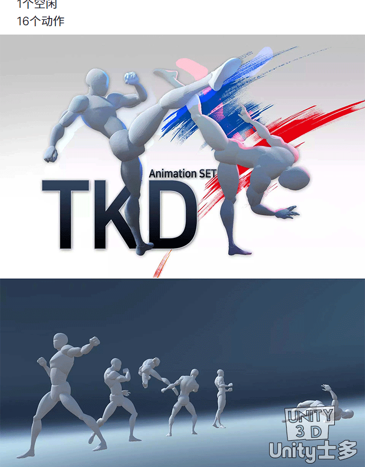 Unity跆拳道踢打攻击打斗动作动画U3D素材TKDstyle AnimSet v1.3