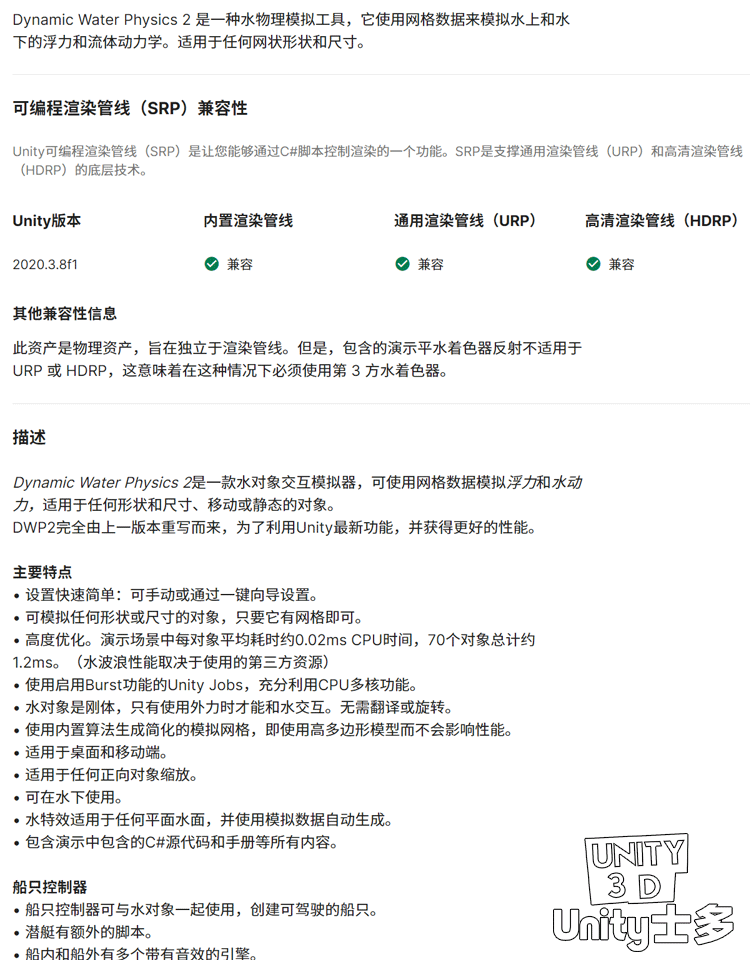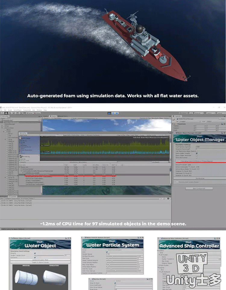 Unity动态水/船舶控制器浮力模拟Dynamic Water Physics 2 2.6.2a