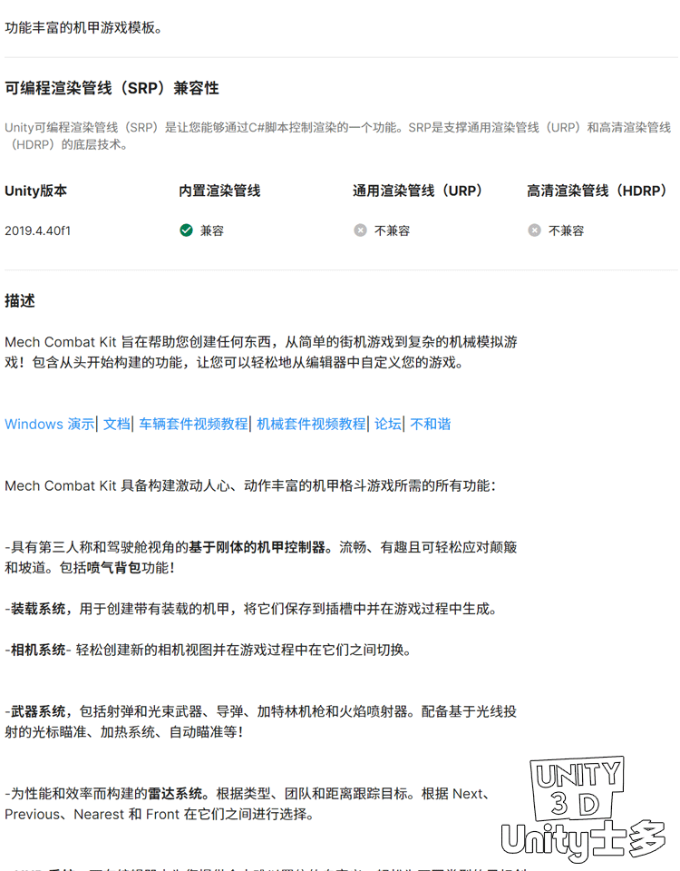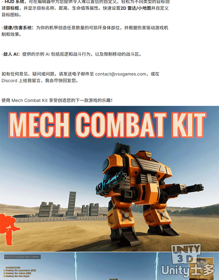 Unity3D机甲机械战斗机器人游戏项目模板Mech Combat Kit v2.0.1