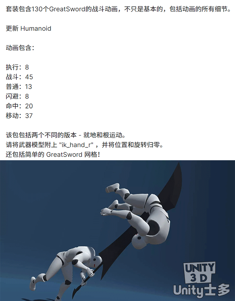 Unity武器大剑大刀格斗动作动画U3D素材GreatSword_Animset v1.0