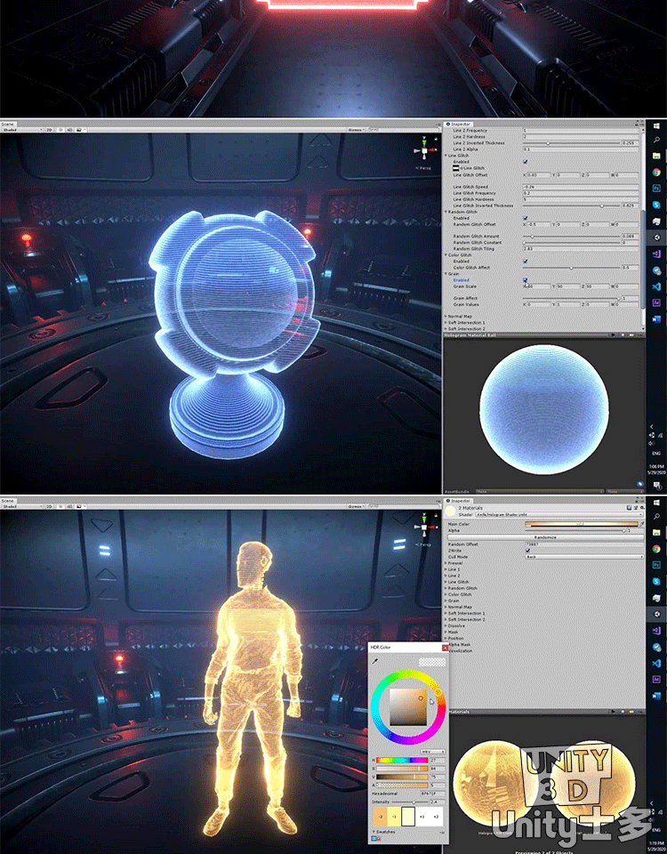 Unity3D科幻科技全息投影特效着色器Sci Fi Hologram Shader 1.1