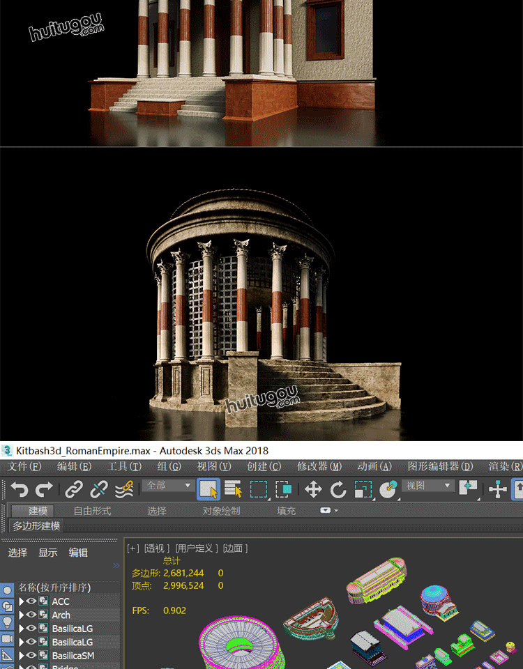 古罗马帝国著名建筑斗兽场殿堂PBR模型Kitbash3D - Roman Empire