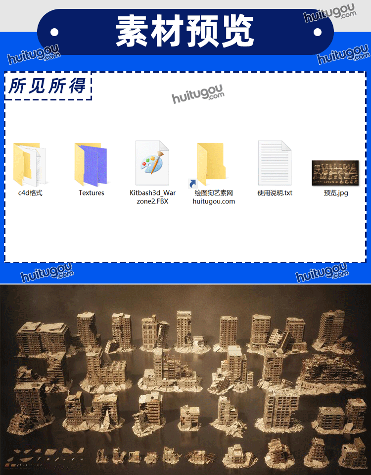PBR停火战区设施废墟破损工地瞭望塔栅栏建筑3D模型Kitbash3D-DMZ
