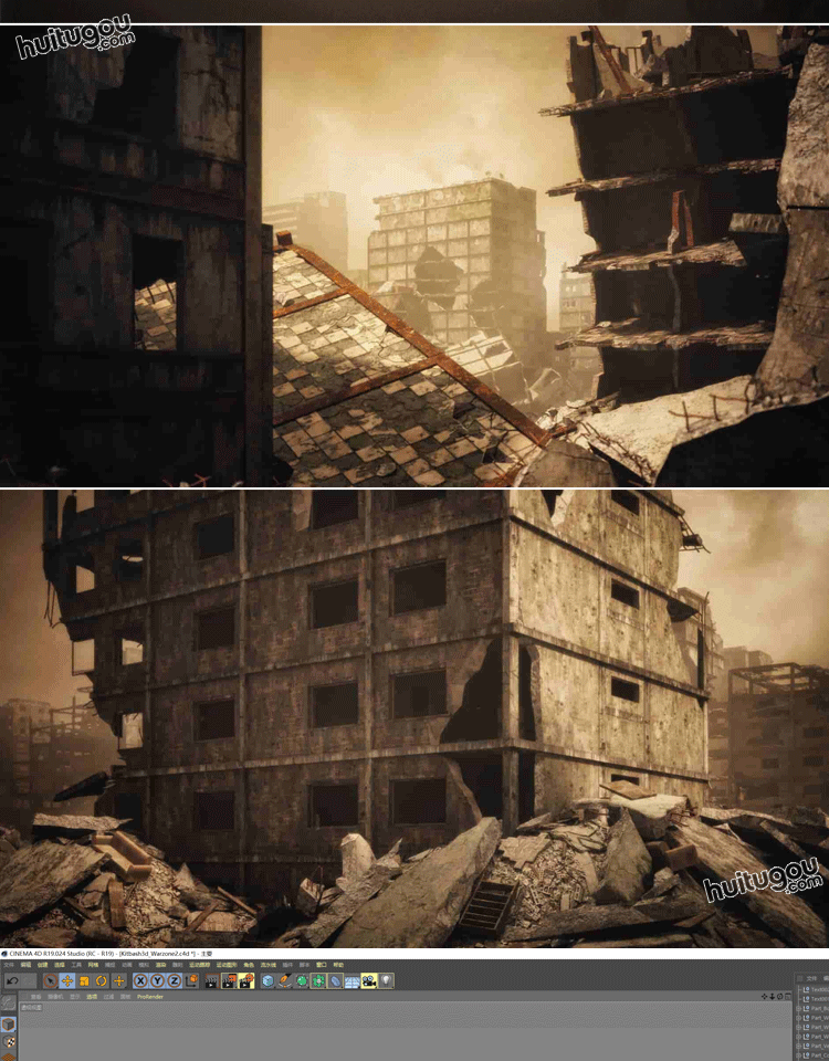 末日毁灭战后废墟城市场景地震建筑3D模型 KitBash3D Aftermath