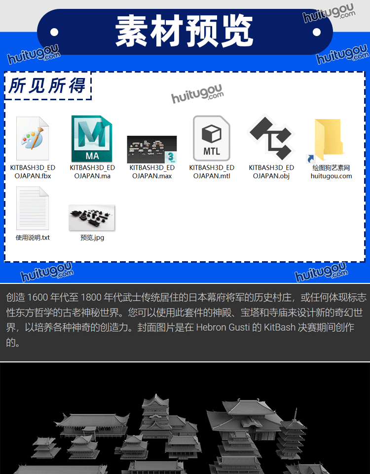 幕府时代日本宝塔寺庙东方哲学建筑3D模型Kitbash3D – Edo Japan