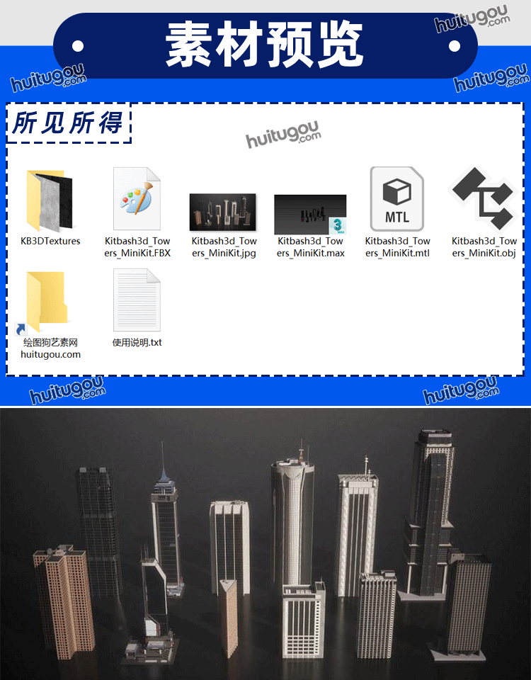 现代城市建筑高楼大厦摩天大楼模型 Kitbash3D Mini Kit Skylines