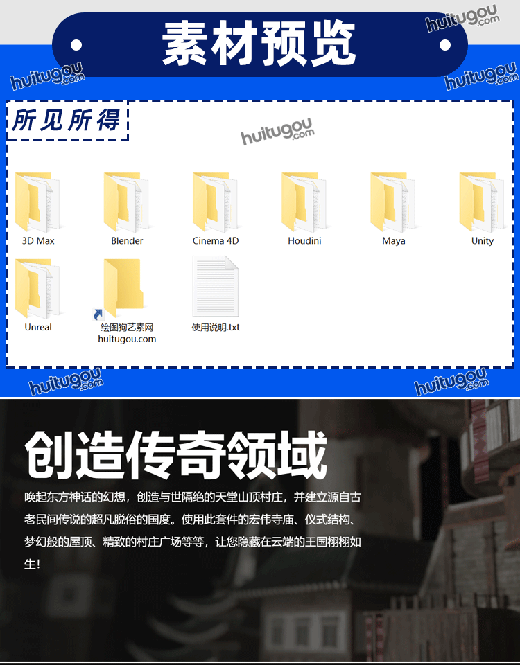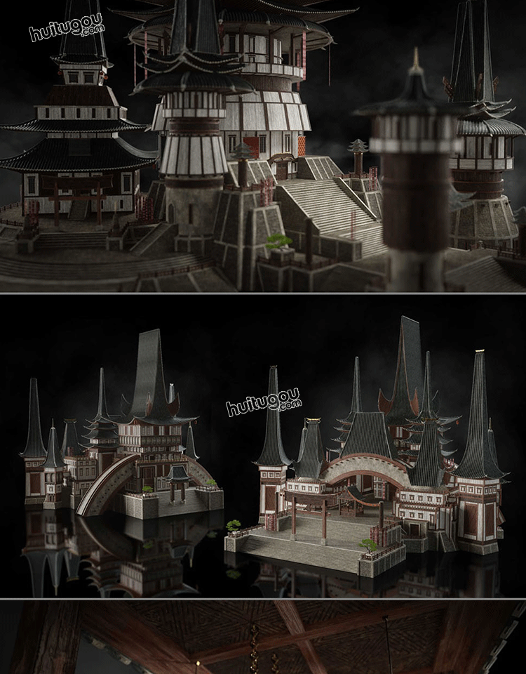 MAYA远古东方神话魔幻风格盖亚竹风建筑3D模型素材Kitbash3D-Gaea