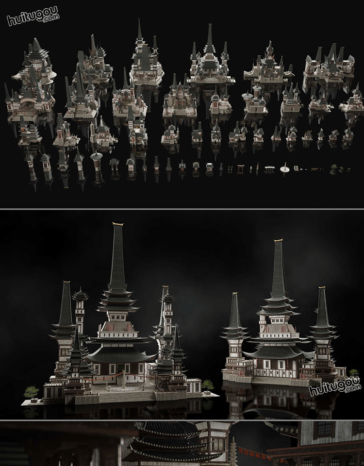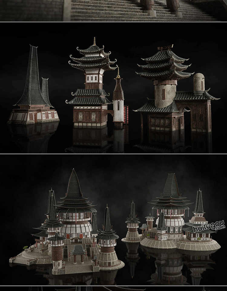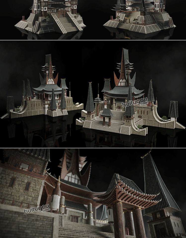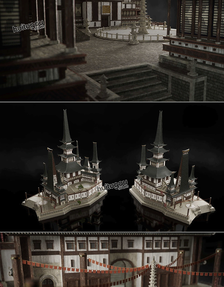 宏伟东方神话古风香格里拉建筑套件Kitbash3D-Shangri.La