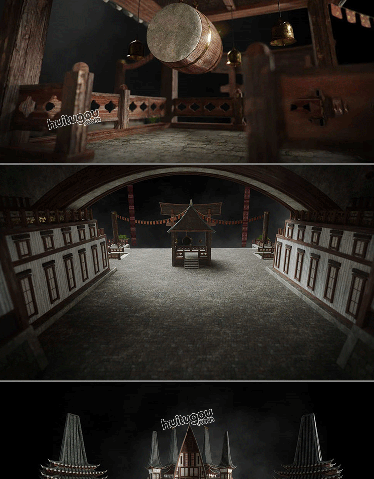 亚洲古风茶馆寺庙3D模型素材C4D日本幕府古建筑Kitbash3d-Shogun