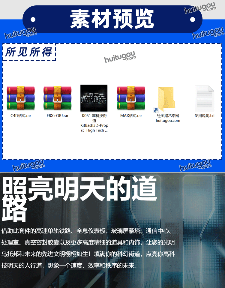 赛博朋克科幻城市街道楼房商铺3D模型Kitbash3D - Cyber Streets