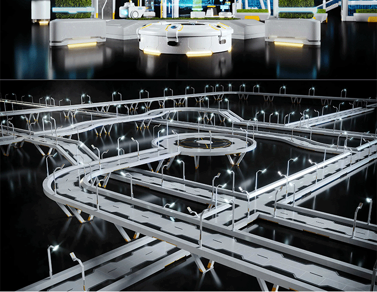科幻未来高科技街道客服通信中心建筑3D模型High Tech Streets