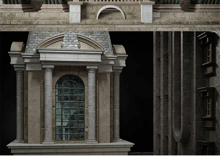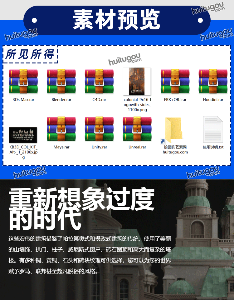 欧式复古宏伟殖民城堡建筑楼房3D模型素材KitBash colonial