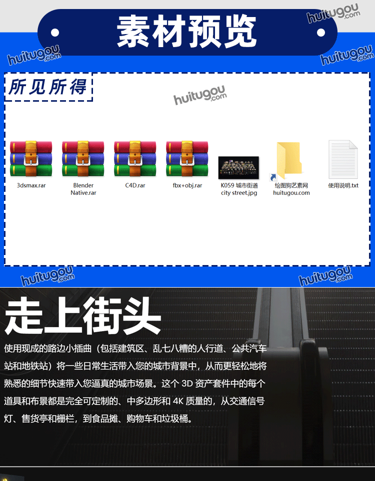都市城市街道设施3D模型广告牌地铁站报停公交站KB3D-city street