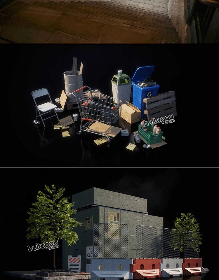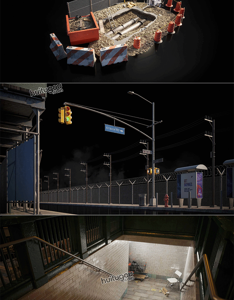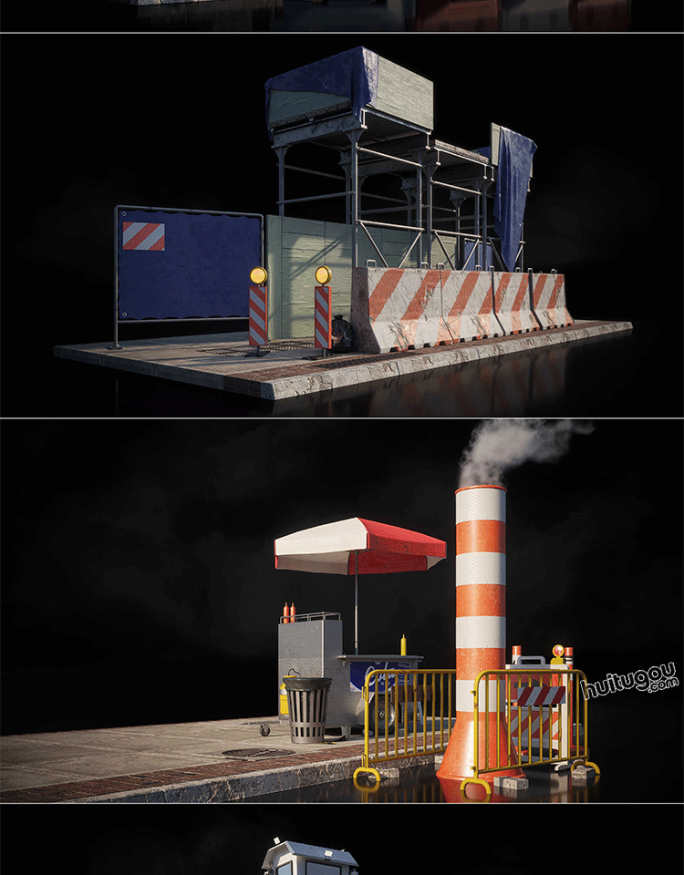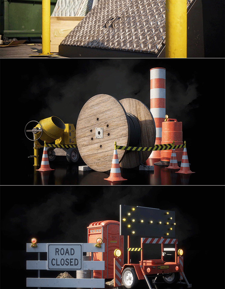 城市交通道路警示路灯路障设施3D模型Kitbash3d PROPS StreetSide