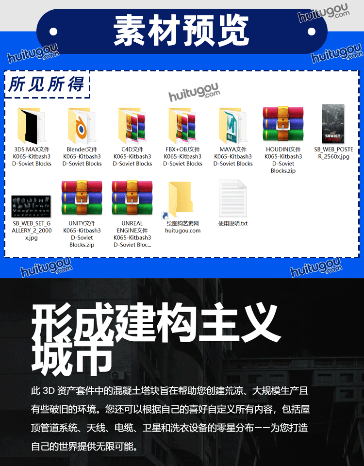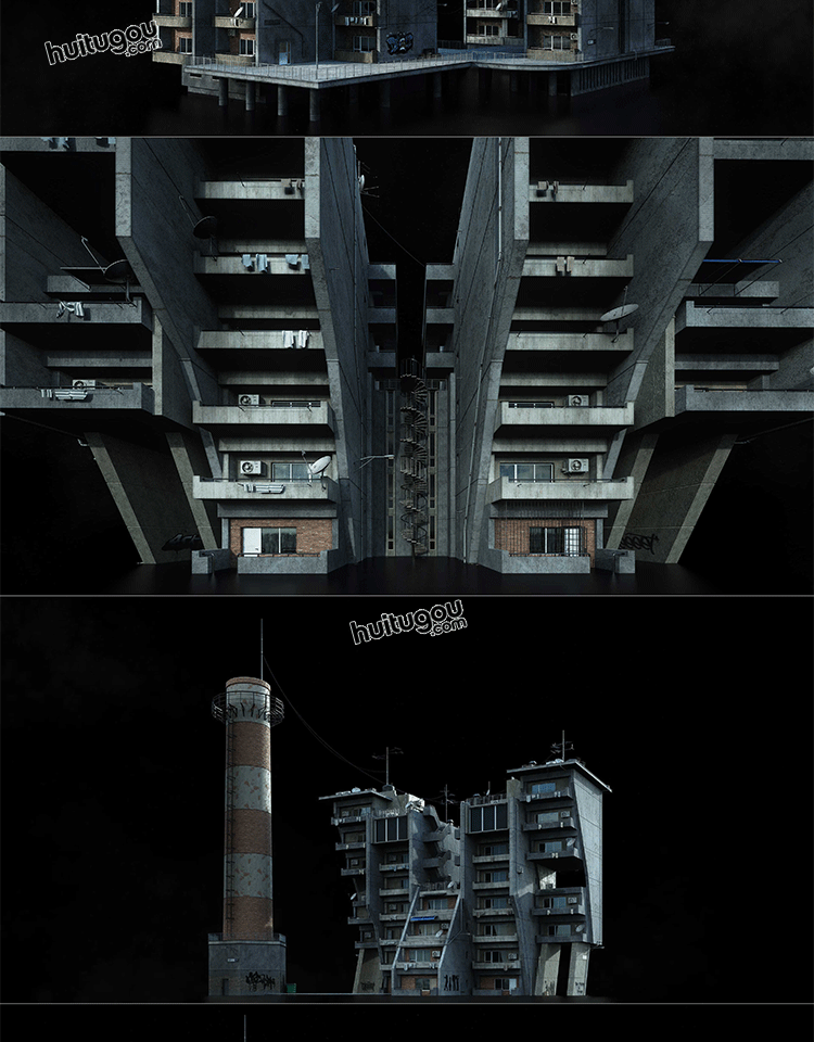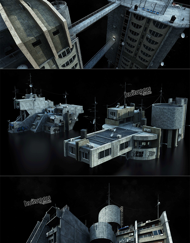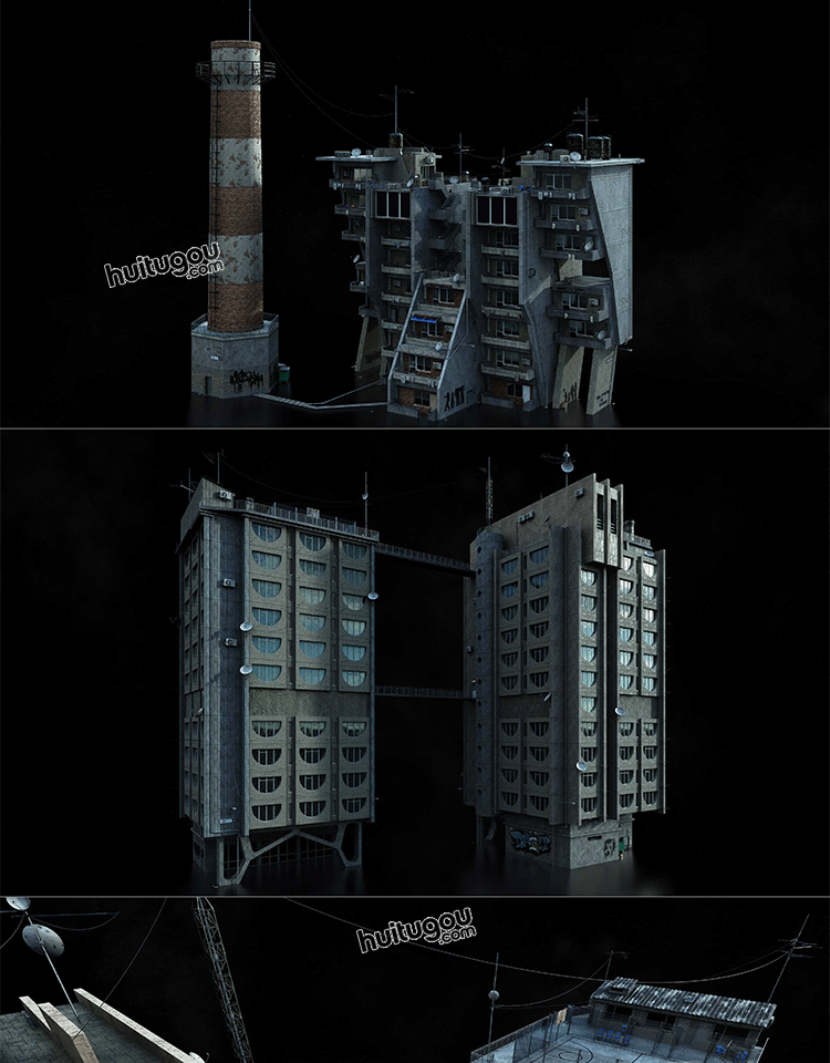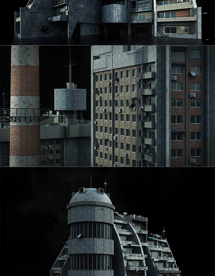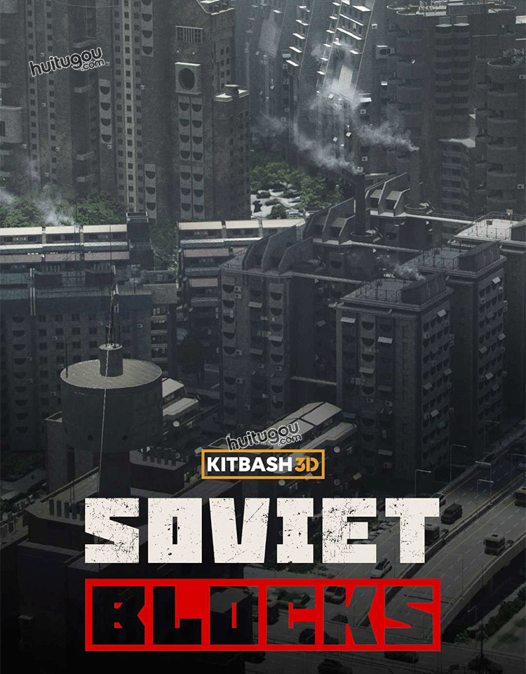 C4D苏联街区荒凉破旧建筑大楼3D模型素材Kitbash3D-Soviet Blocks