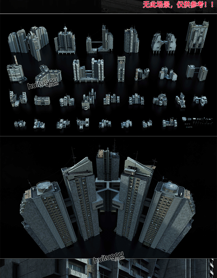 未来科幻世界重金属建筑3D模型素材KitBash3D-Heavy Metal