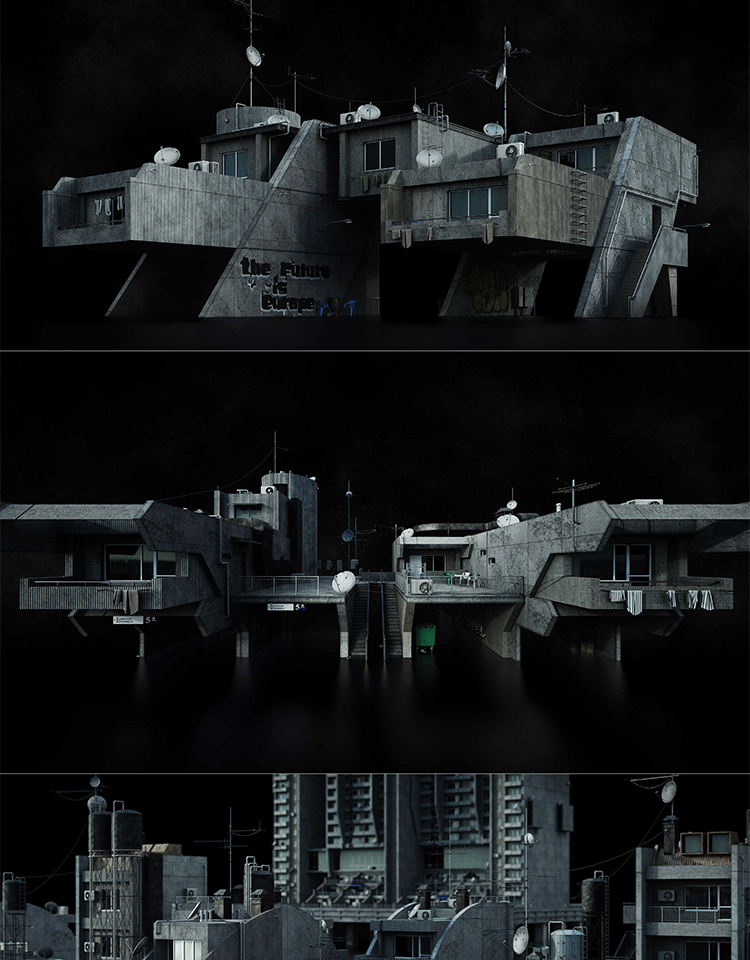 破旧街区C4D平民窟建筑模块棚户区3D模型素材Kitbash3D-Favelas