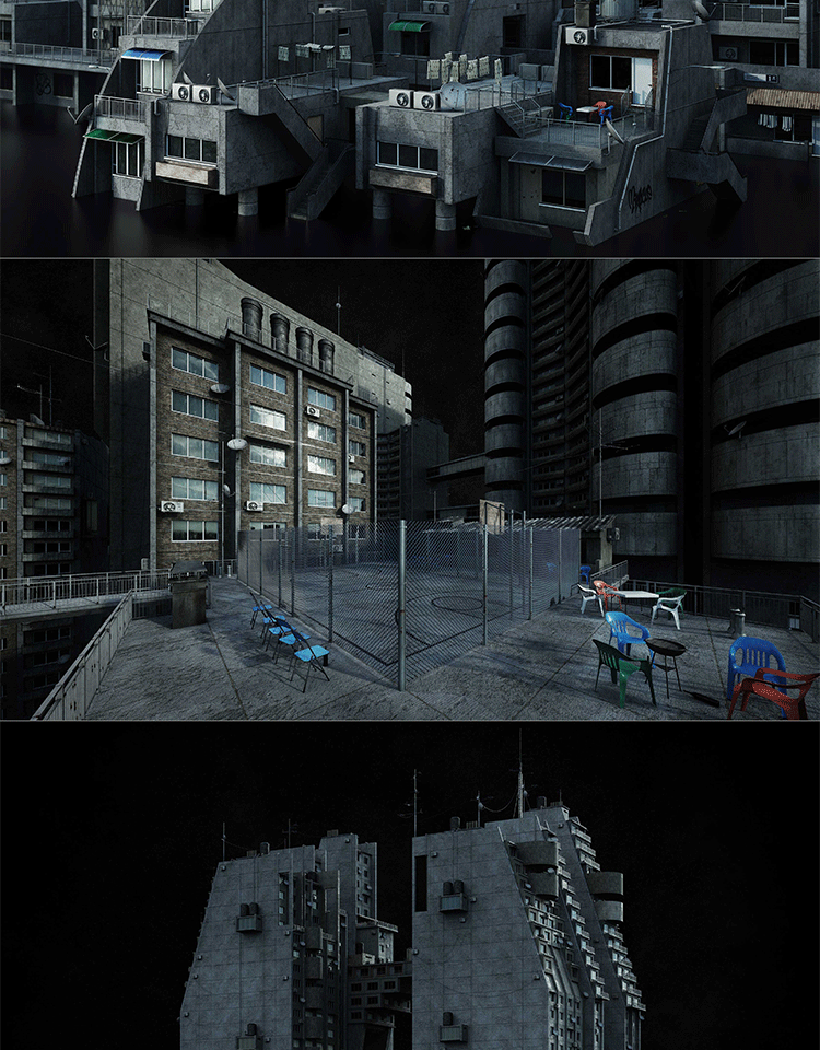 赛博朋克城市街区商店楼房建筑3D模型素材Kitbash3D - Cyberpunk