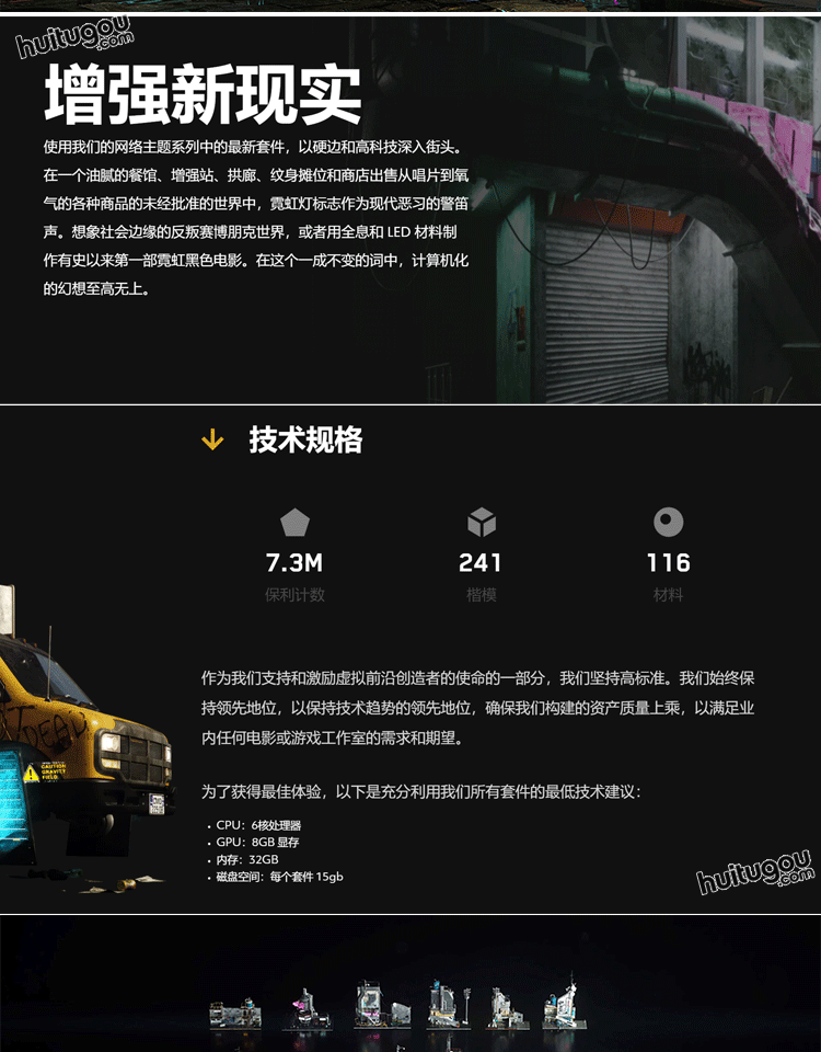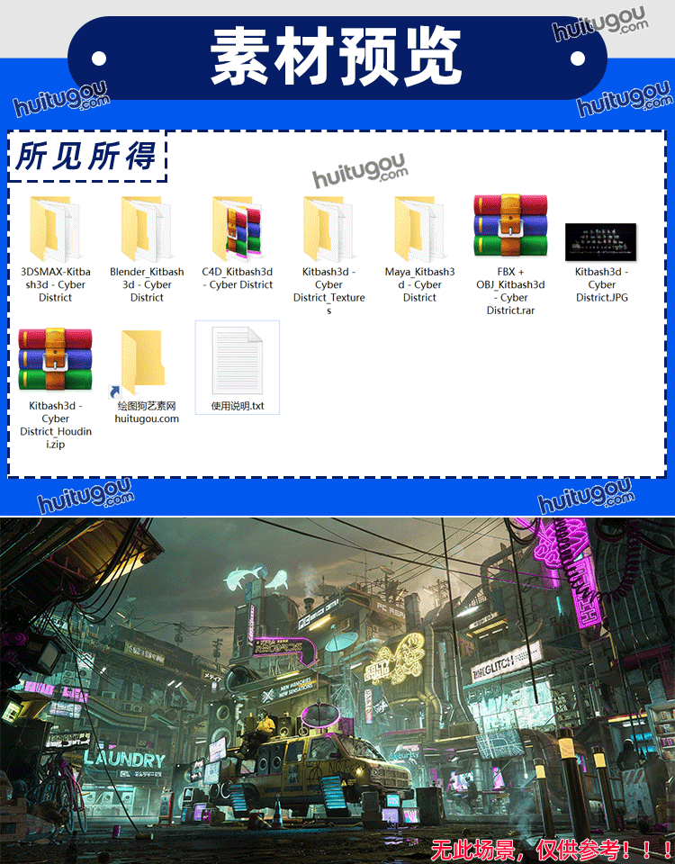 赛博朋克科幻城市街道楼房商铺3D模型Kitbash3D - Cyber Streets