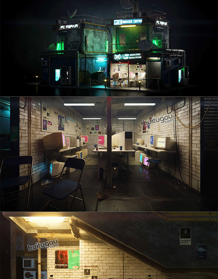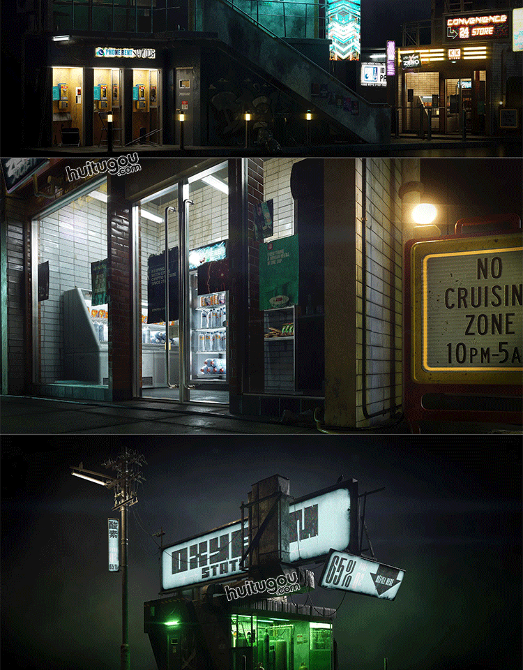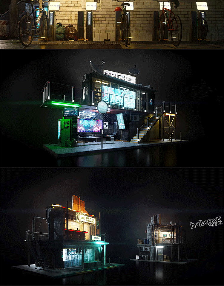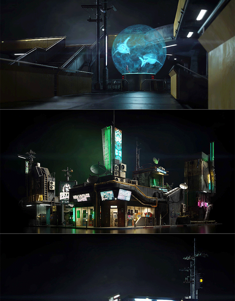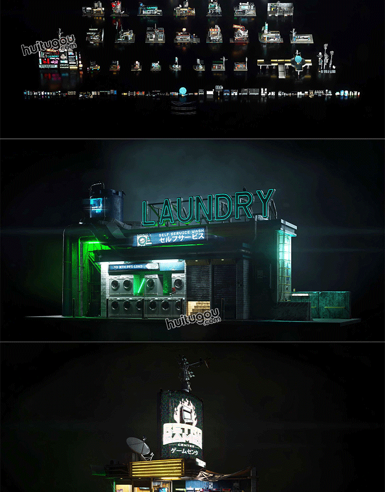 赛博朋克城市街区商店楼房建筑3D模型素材Kitbash3D - Cyberpunk