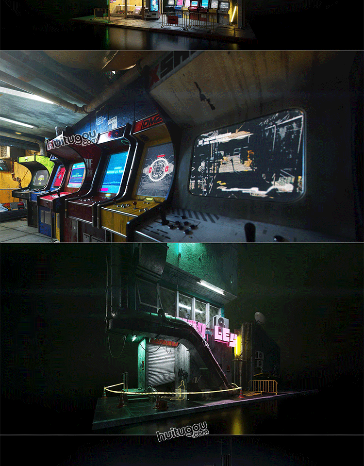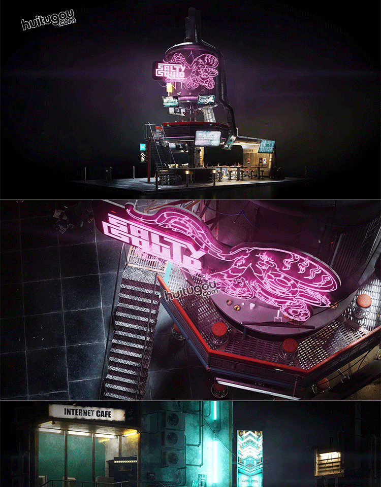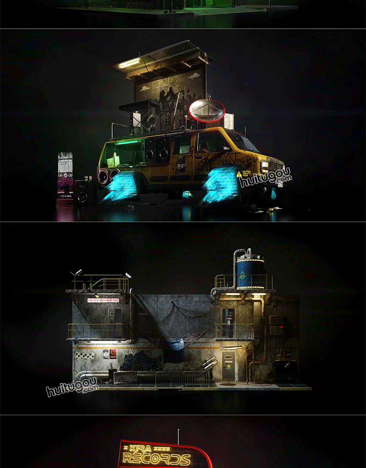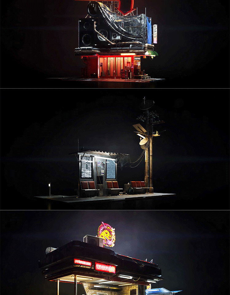 赛博街区商店摊位餐厅餐馆3D模型素材Kitbash3d - Cyber District