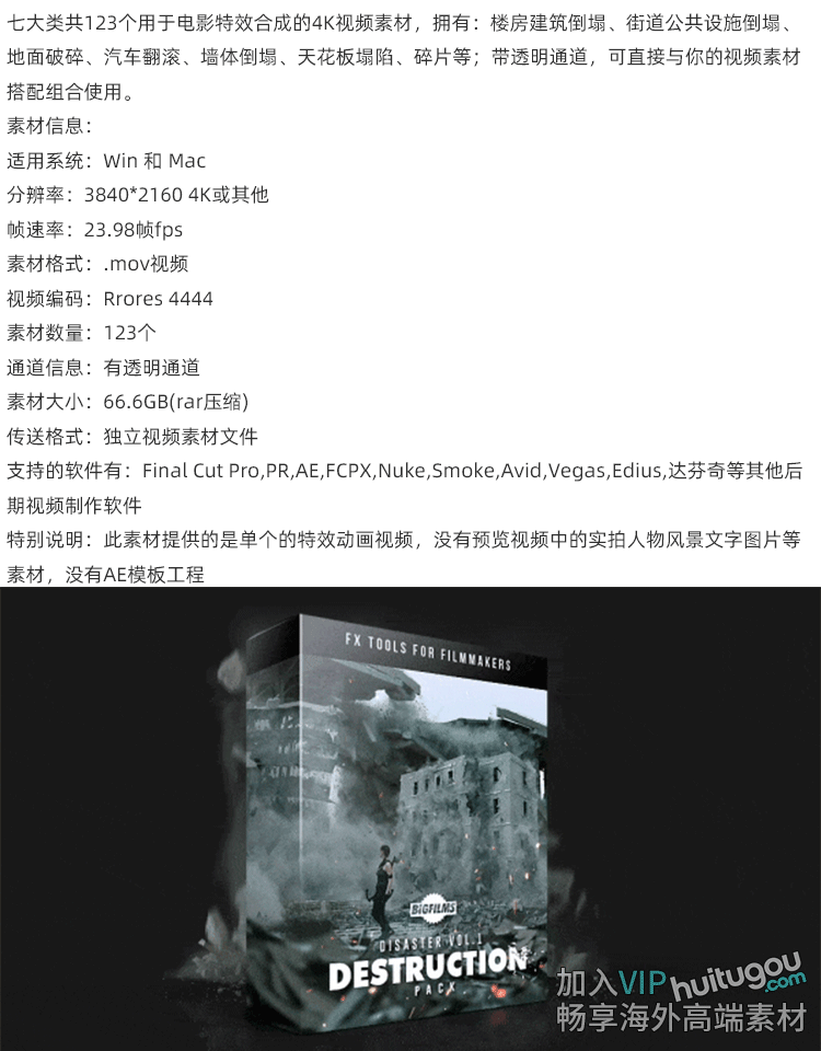 123个楼房建筑倒塌地面墙汽车公共设施破碎特效动画合成+透明通道
