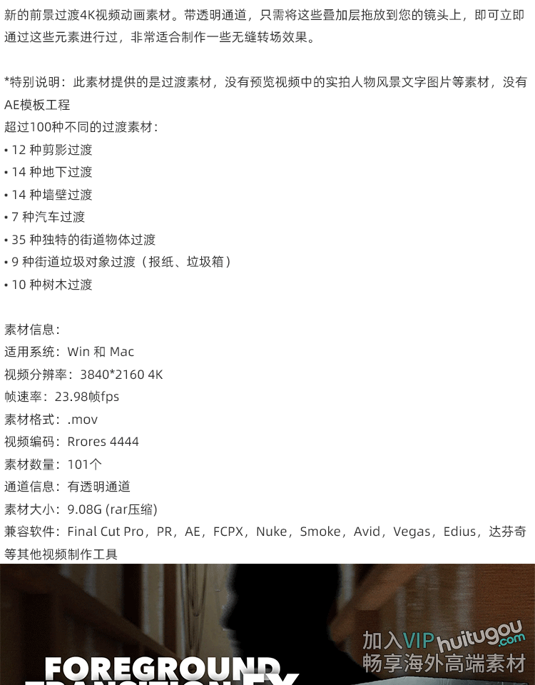 100个前景物体元素移动遮挡无缝转场过渡动画4K视频剪辑MOV素材