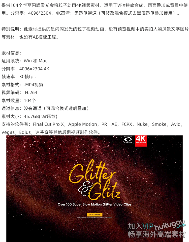104个华丽闪耀发光金粉粒子动画4K视频特效合成背景画面叠加素材