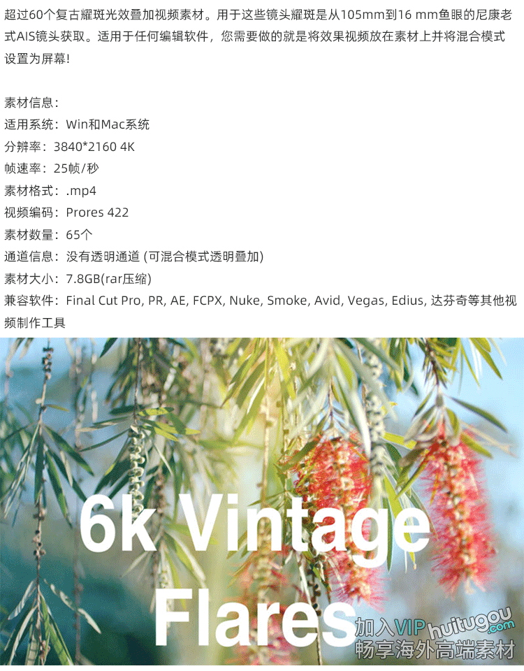 65个复古镜头氛围光晕光斑光效动画叠加4K视频MP4格式叠加素材