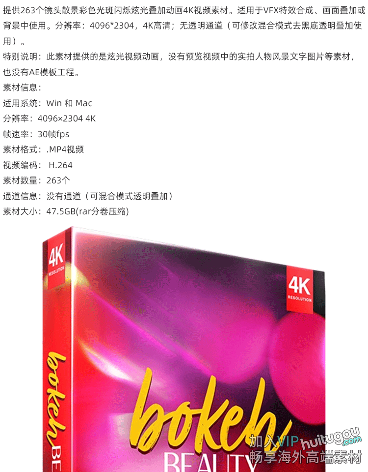263个镜头散景彩色光斑闪烁炫光叠加动画4K视频VFX特效合成素材