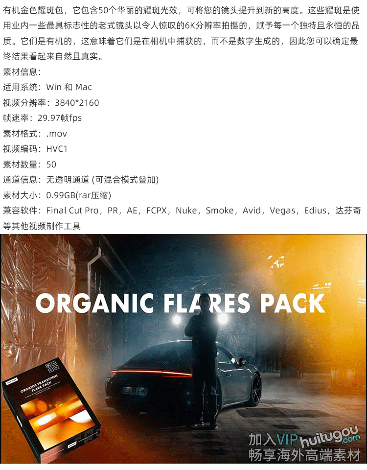 50个镜头灯光氛围金色耀斑光效光晕动画4K视频叠加MOV格式素材