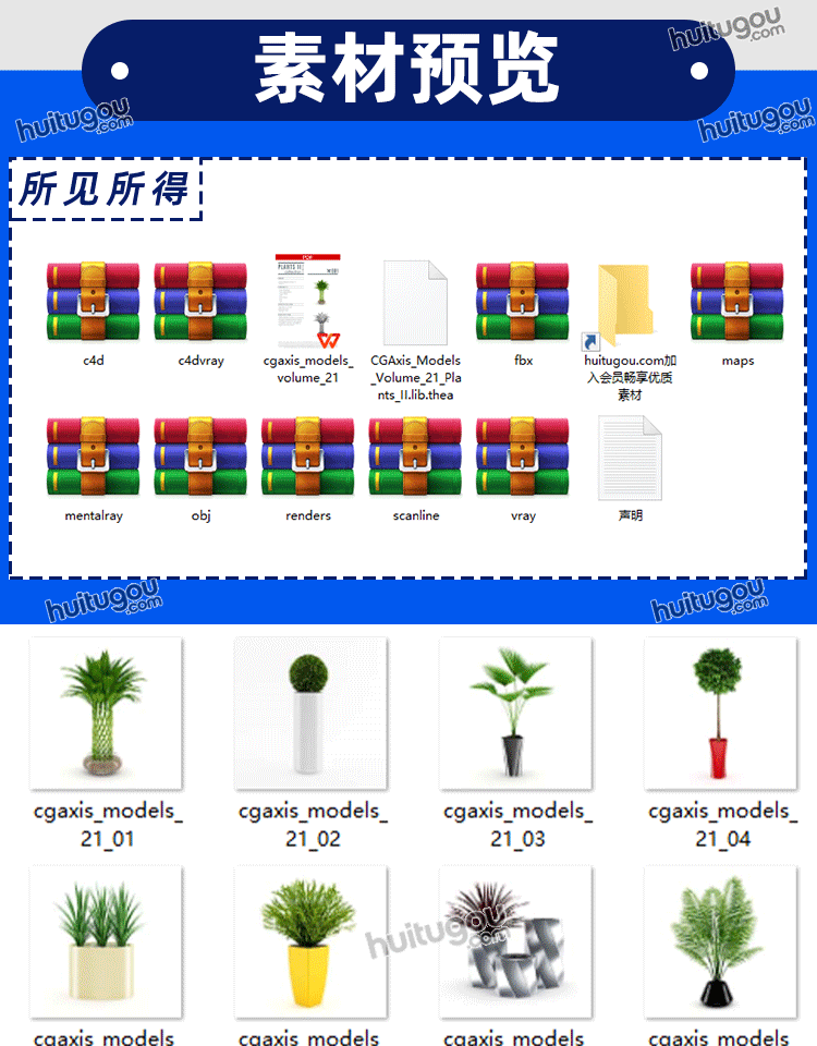 CGAXIS Plants-4[植物]现代装饰盆栽3D模型max素材C4D格式FBX OBJ