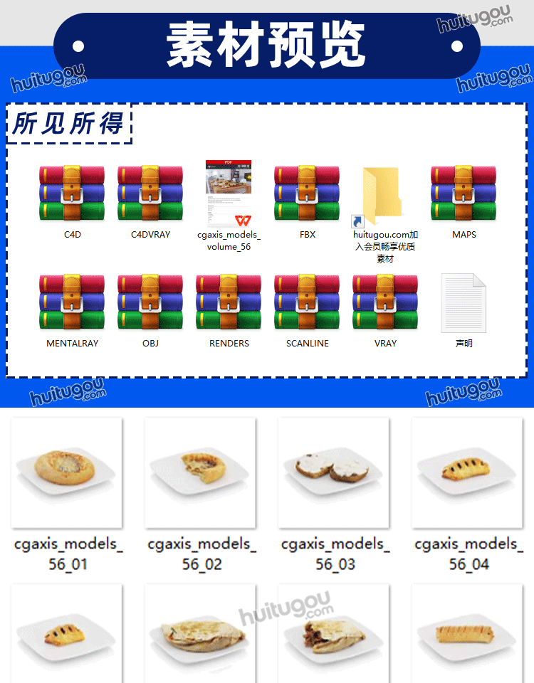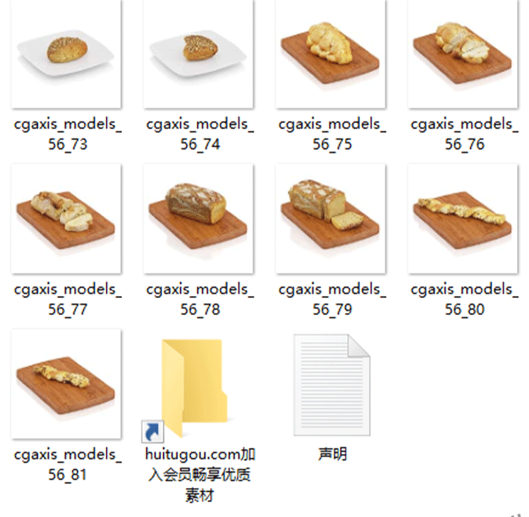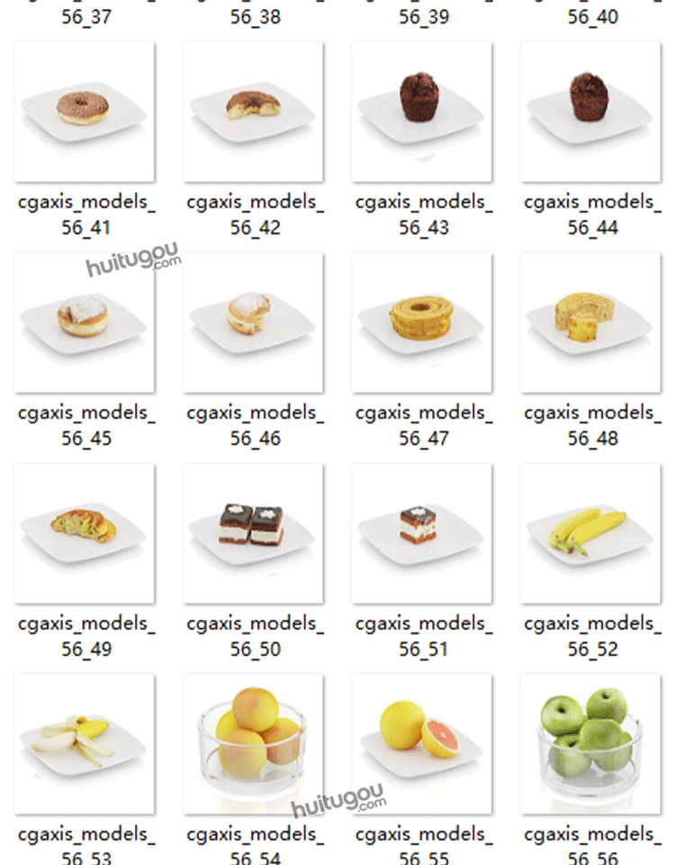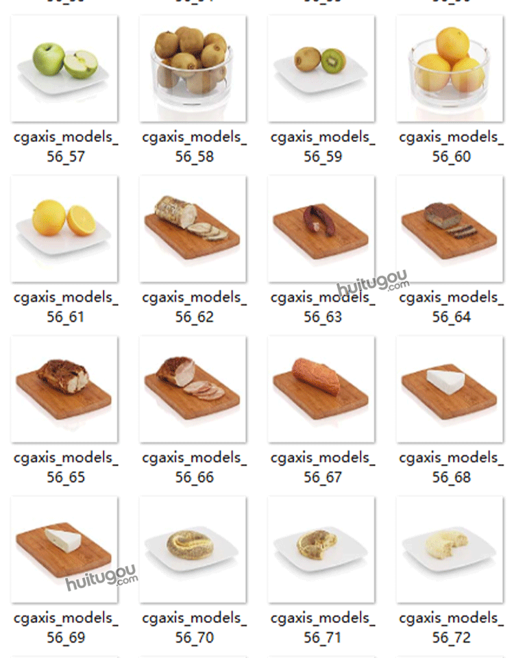 CGAXIS Food-3[食物]面包披萨蛋糕水果C4D模型MAX素材FBX格式OBJ